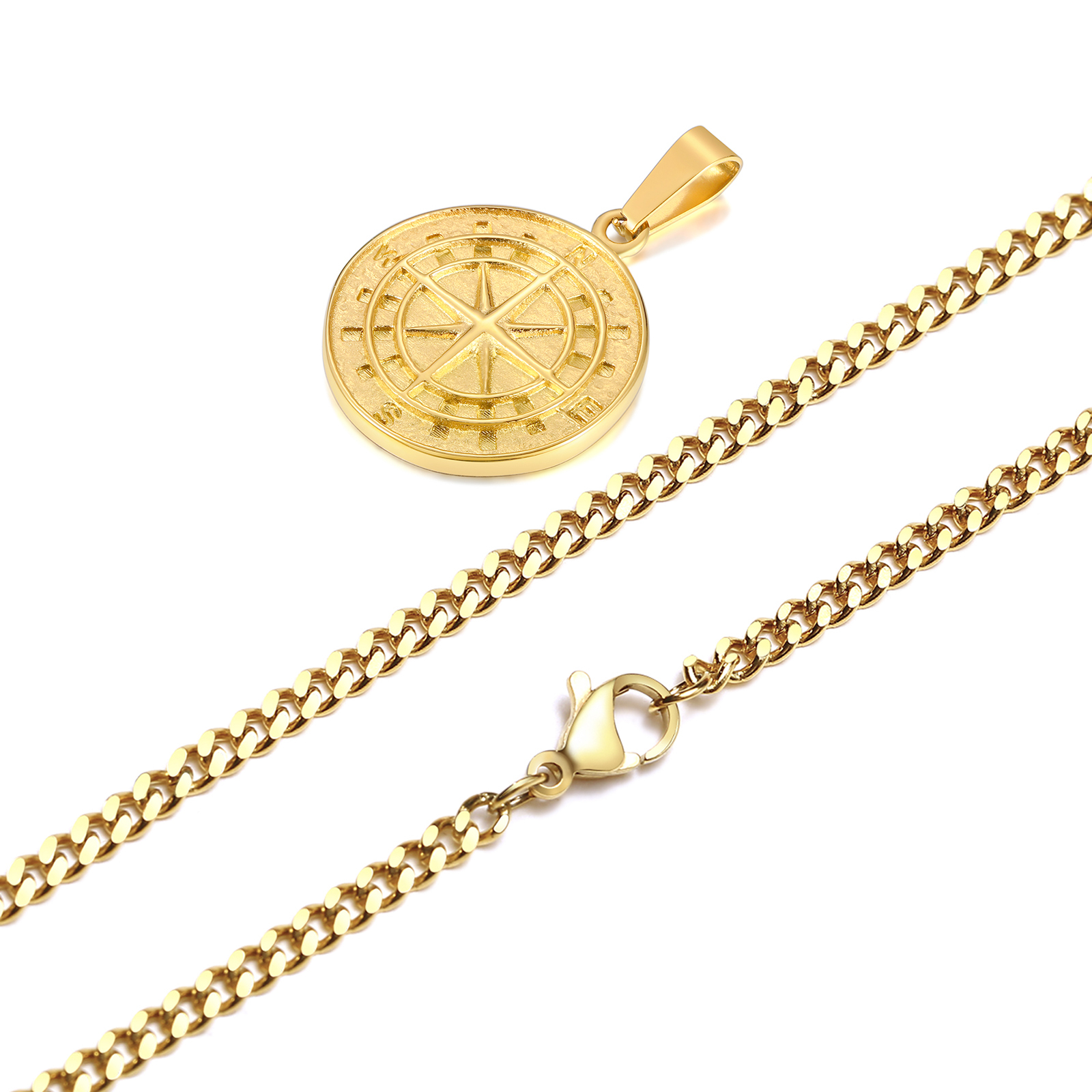 Men Retro Silver Color Seeker Compass Necklaces, Rock Punk Vintage Metal Stainless Steel Round Coin Pendant Collar Gift Jewelry PN-1527G – Sumsfashion