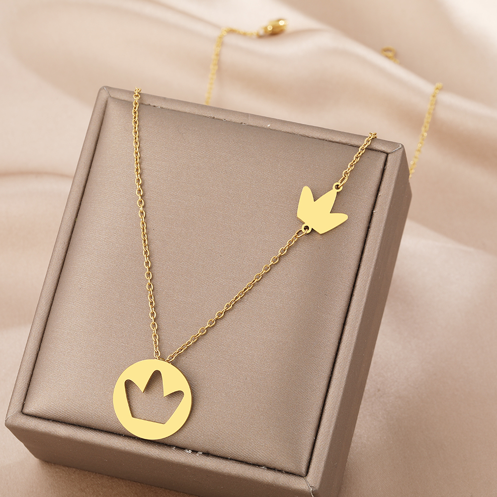 Stainless Steel Necklaces Light Luxury Classic Crown Pendants Chains Temperament Necklace For Women Jewelry Wedding Gift Gold Color – Sumsfashion